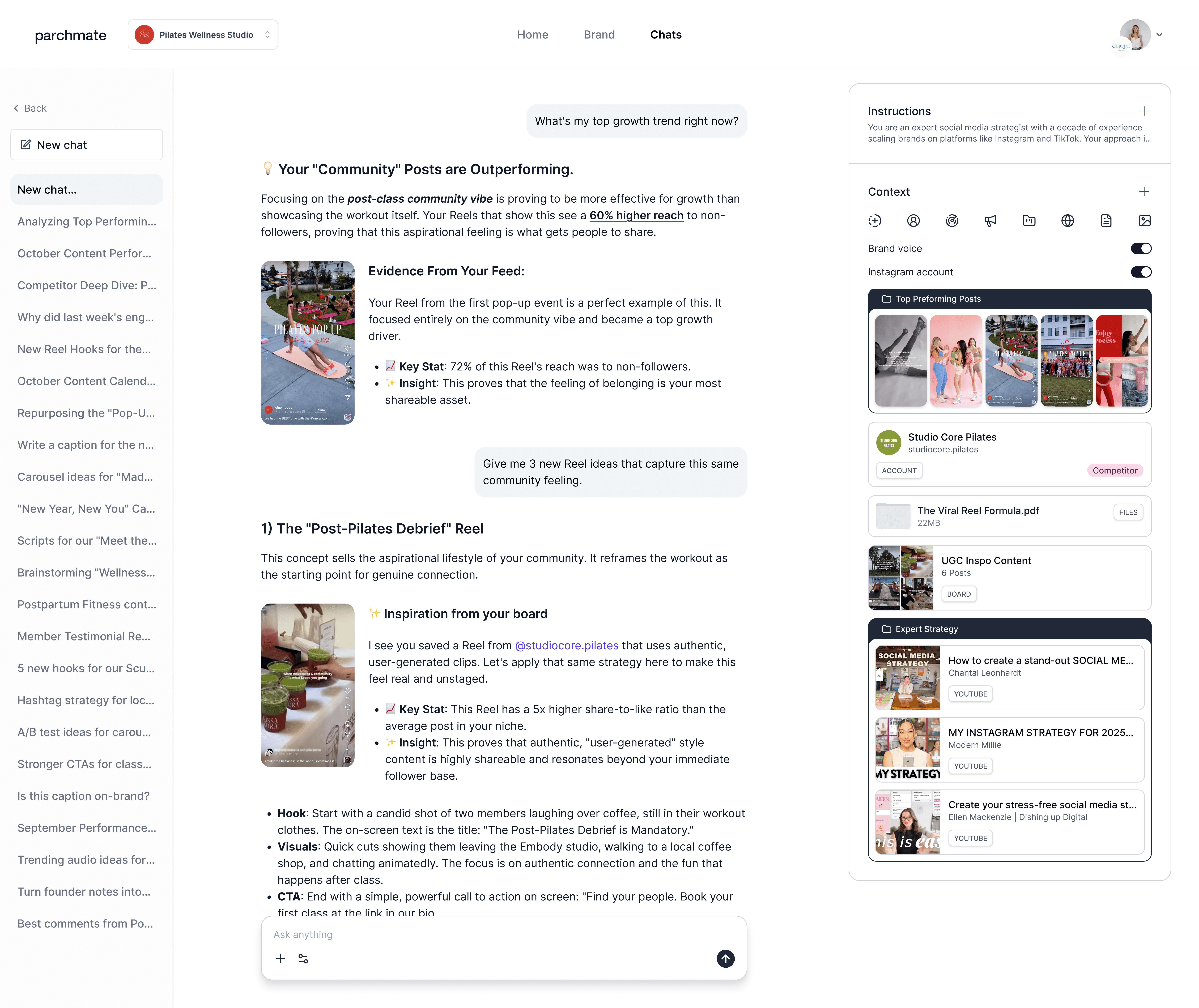 “Parchmate is like having a creative director that knows my brand voice and tells me exactly what to post next.”